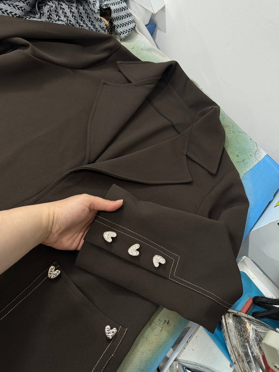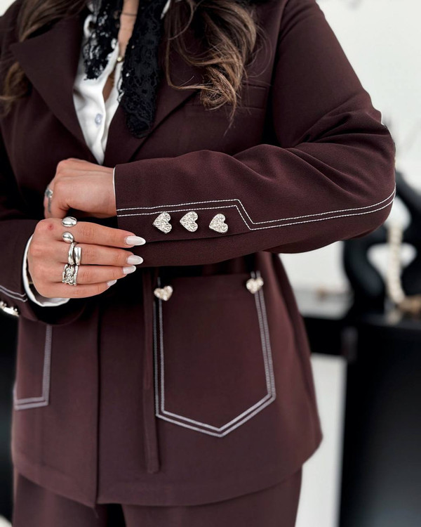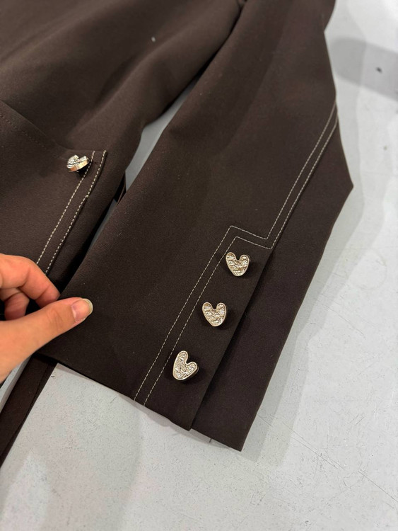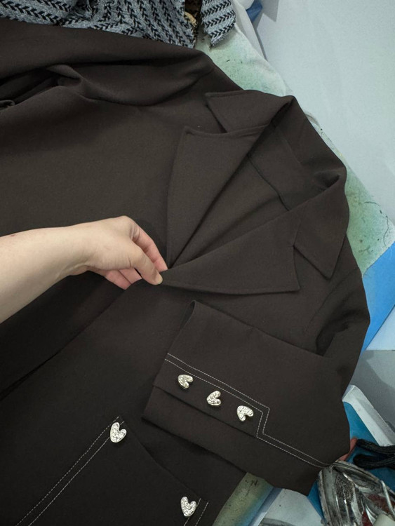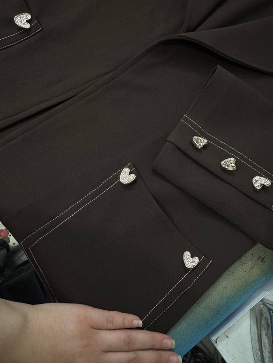 اکسسوری قلب دفرمه مینیمال روی جیب ها و سر آستین کارشده ✅